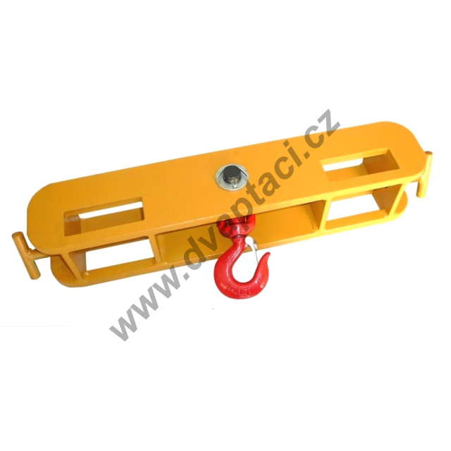 - bezpečnostní pojistka: hák je vybaven zajišťovacími šrouby, které jej pevně zafixují na nosných vidlicích. Hák se nepohne a nehrozí tak pád břemene.