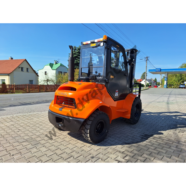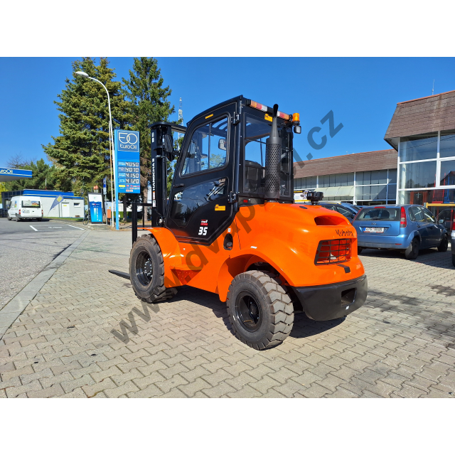 - Nosnost 3500 kg --> vhodný pro manipulaci s těžkými paletami, big-bagy, svazky řeziva, ocelovými profily i stavebními prvky.